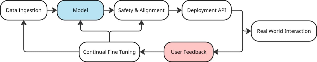Or consider OpenAI, whose chain includes foundational research (a primary activity), GPU procurement at scale (a support activity), API deployment (a hybrid of operations and sales), and fine-tuning partnerships with enterprise clients. OpenAI’s value is not just in its models but in how it orchestrates its Innovation Stack: hardware partnerships with Nvidia and Microsoft, RLHF pipelines, safety layers, deployment infrastructure, developer ecosystem—all tied into a seamless feedback loop of product and research.